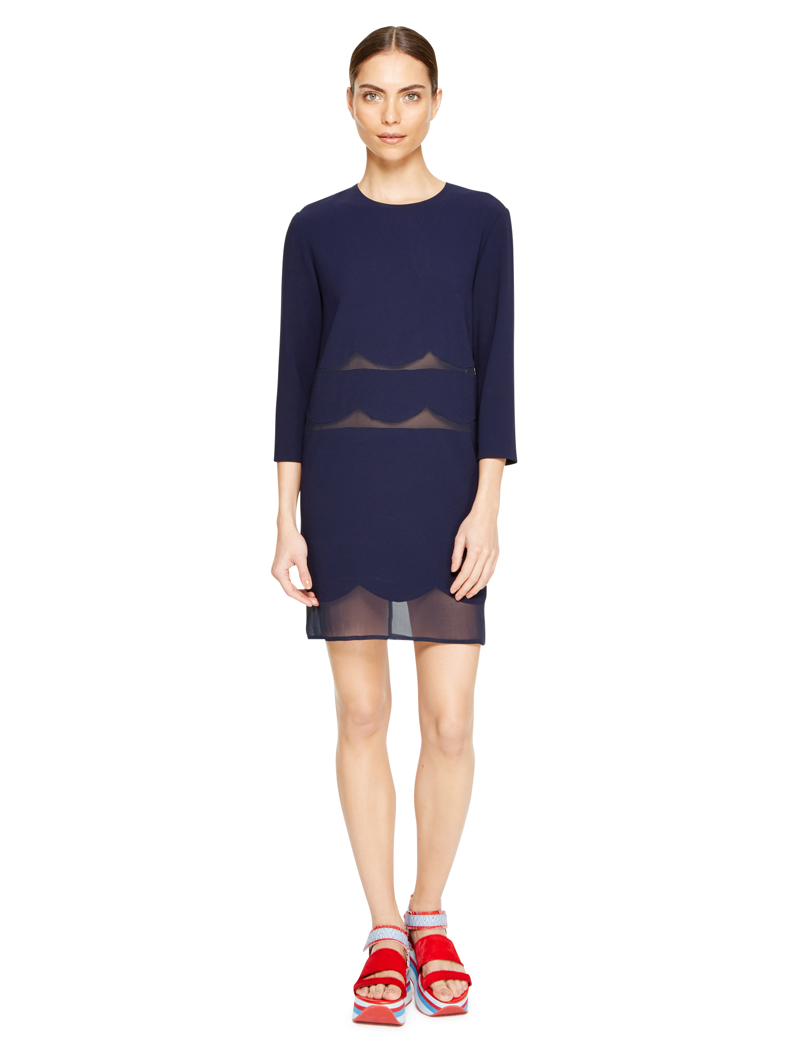 Em primeiro lugar, um bonito e chique vestido de cetim e crepe com transparências na cintura. Este vestido custava 270 euros, agora somente 80,90 euros.