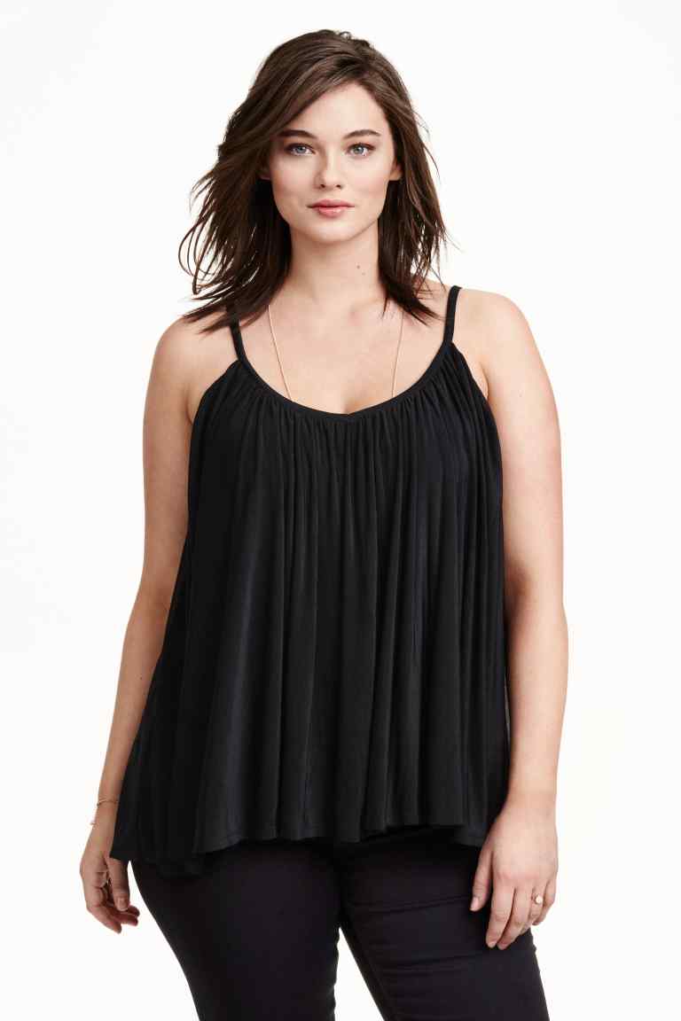 H&M: new arrivals moda plus size – top évasé preto